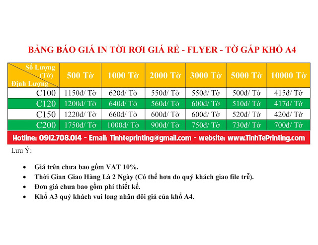 In Tờ Gấp A4: 900K / 1000 (Đã Bao Gồm Thiết Kế)